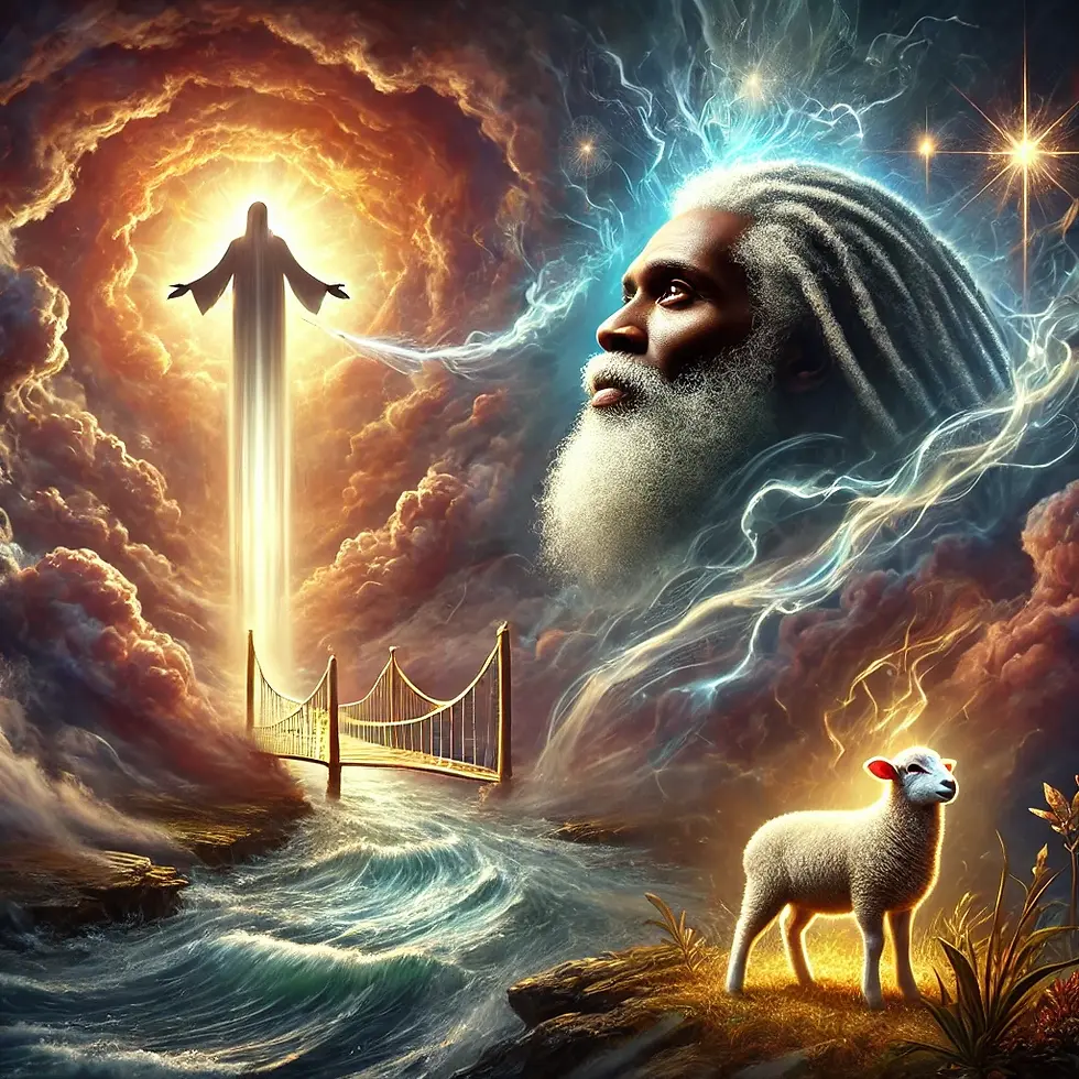 This image is more than just a visual it is a representation of faith, miracles, and the unseen hand of the Creator at work. The older Black man with dreadlocks stands in awe, his face reflecting the wisdom of experience and the power of belief. His upward gaze symbolizes trust in the divine, even when the path is unclear.